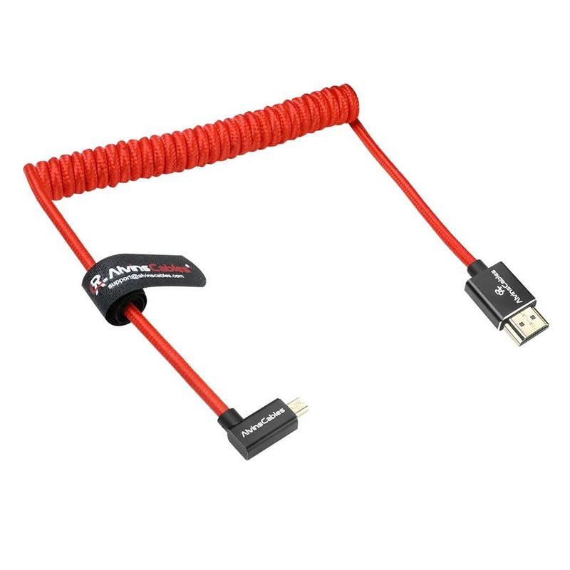 Cavo Micro HDMI ad Angolo Sinistro 8K Professionale di Alvin (A Spirale, Rosso)